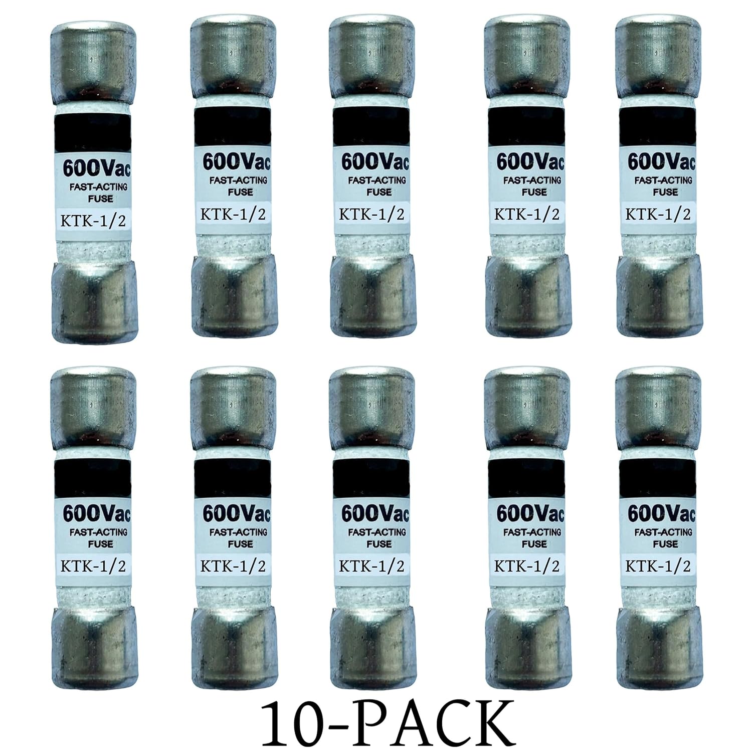 Part number: KTK-1/2A,in box and pack of 10 PACK Fast-acting supplemental electrical fuse Highly current-limiting for low peak let-thru current Improved cycling ability for frequent motor starts/stops without nuisance fuse opening