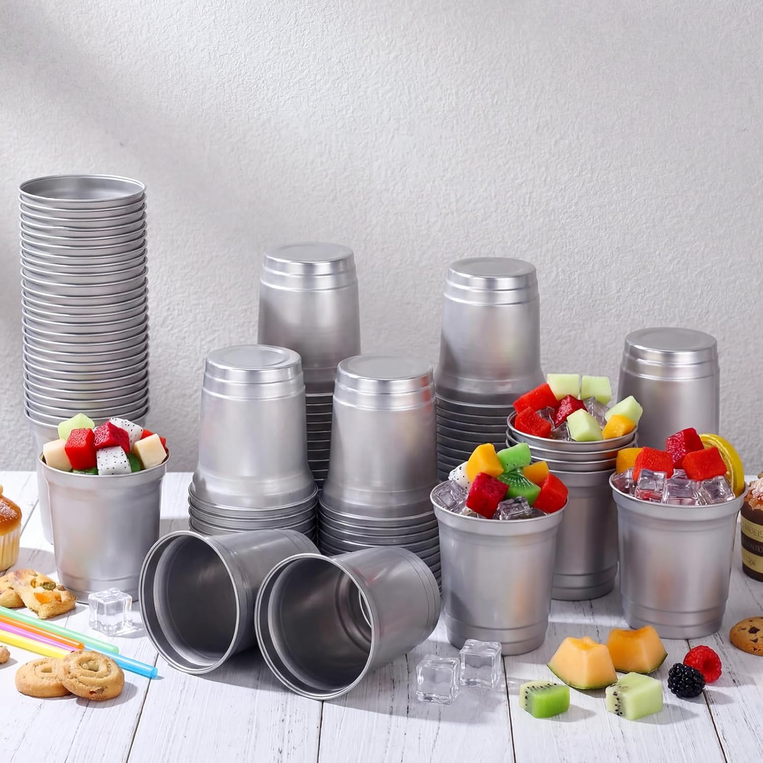 Features: Abundant Quantity: You will receive 100 pack 12 oz metal aluminum cups, providing ample quantity for large gatherings or parties and daily replacement. Our metal aluminum cups are feature rich functionality and stylish appearance, making them good as thoughtful gifts for you to give away Recyclable Material: Our aluminum drinking cups are made from infinitely recyclable aluminum, sturdy, reusable and infinitely recyclable, clean and odorless, Ideal for festival events, large parties, and daily use Specifications: Material: aluminum Color: silver Size: 12 oz Package includes: 100 x Aluminum cups Notes: Manual measurement, please allow slight errors on size. The color may exist a slight difference due to different screen displays
