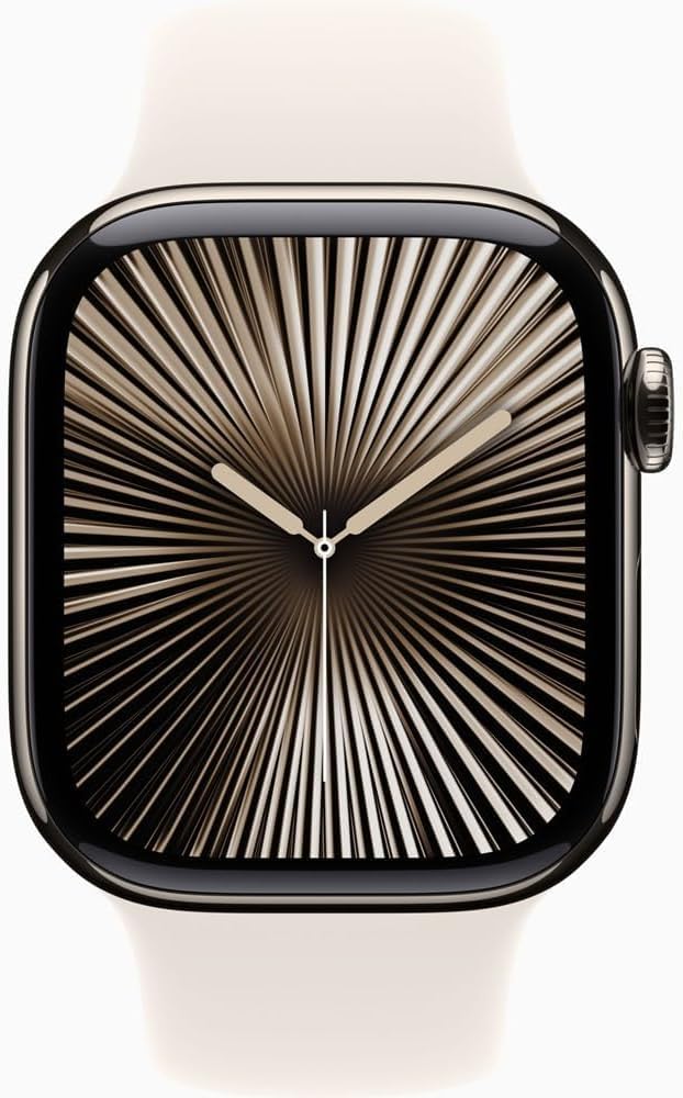 Meet Apple Watch Series 10. A bigger display with more screen area and a thinner, lighter design. Get advanced fitness and health features with Sleep Apnea Notifications, plus faster charging. WHY APPLE WATCH SERIES 10—Bigger display with up to 30 percent more screen area. A thinner, lighter, and more comfortable design. Advanced health and fitness features provide invaluable insights. Safety features connect you to help when you need it. Faster charging gives you 80 percent battery in about 30 minutes. ADVANCED HEALTH INSIGHTS—Take an ECG anytime. Get notifications if you have high or low heart rate or an irregular heart rhythm. Understand your menstrual cycle and get retrospective ovulation estimates. See overnight health metrics like heart rate, respiratory rate, and more with the Vitals app. Track sleep and get notifications if signs of sleep apnea are detected. A POWERFUL FITNESS PARTNER—Measure all the ways you move with Activity Rings, which are customizable to match your lifestyle. Get advanced metrics for a range of workouts with the Workout app. Track the intensity of your workouts with training load. Use depth and water temperature sensors for your aquatic adventures. STAY CONNECTED—Send a text, take a call, listen to music and podcasts, use Siri, and get notifications on the go. Apple Watch Series 10 (GPS) works with your iPhone or Wi-Fi to keep you connected. INNOVATIVE SAFETY FEATURES—Fall Detection and Crash Detection can connect you with emergency services in the event of a hard fall or a severe car crash. Emergency SOS lets you call for help with the press of a button. Check In automatically notifies a loved one when you’ve arrived at a your destination. INCREDIBLE DURABILITY—Crack resistant and IP6X-certified dust resistant. With 50m water resistance. CARBON NEUTRAL—Configure any Apple Watch Series 10 case material or finish to be carbon neutral.