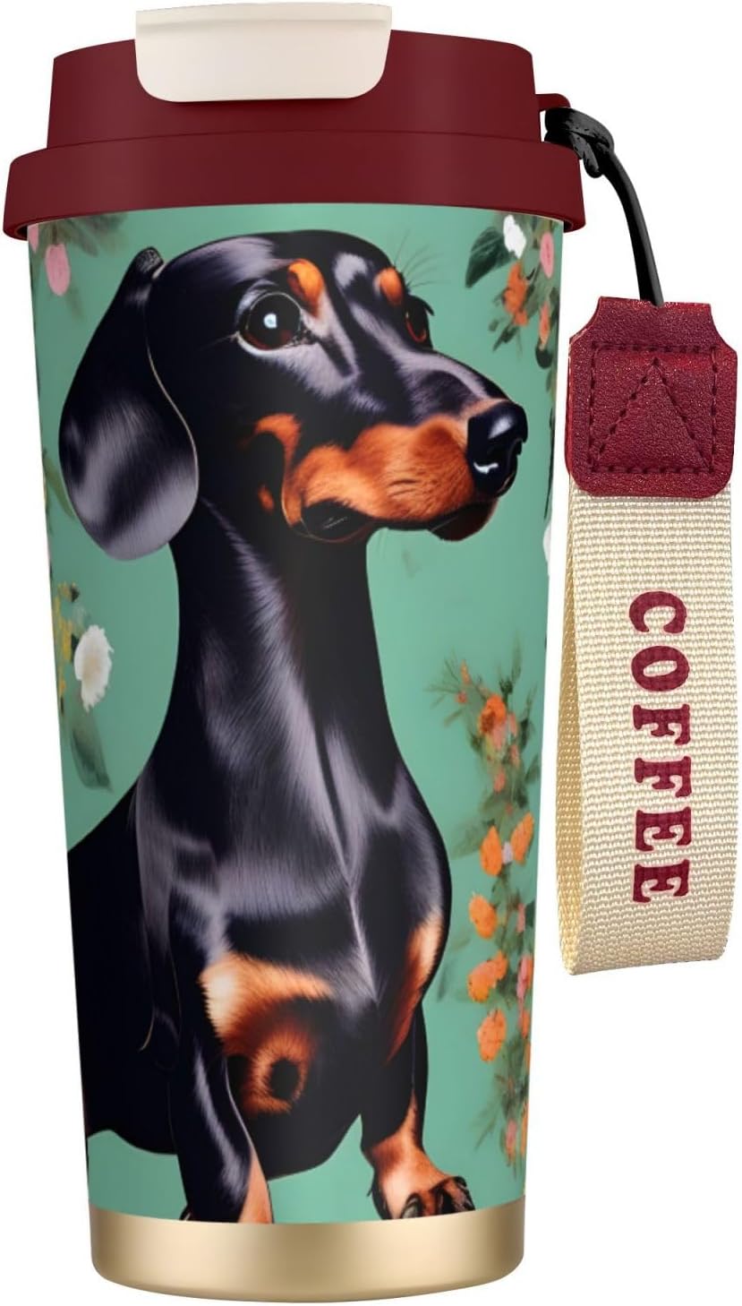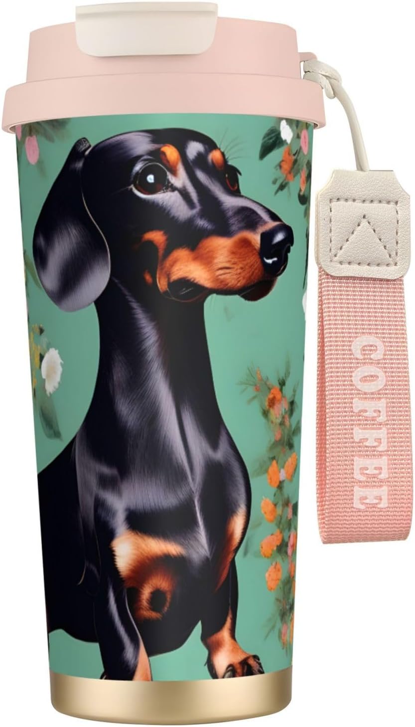This Dachshund Florals Print travel Coffee Mug supports three drinking modes: the direct drink spout for quick drinks during commutes, the straw port for iced coffee and other spill prone beverages, and the open top design that replicates the traditional coffee cup experience. BPA Free 316 Stainless Steel, Safe and Durable Inner liner made of food grade 316 stainless steel, non toxic, odorless, BPA free, safe for long term use.