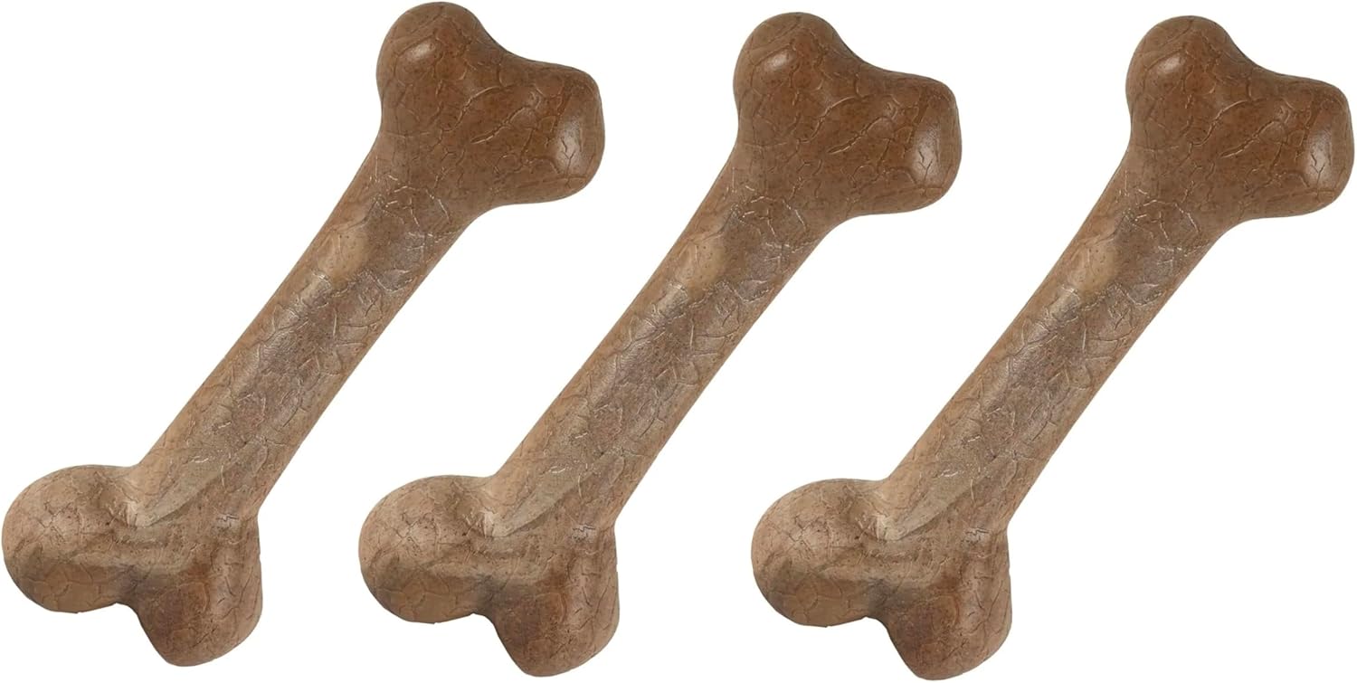 8 Inch Large Dental Chews for Dogs Bacon Flavor Femur Bone Shaped Gentle on Tummy A safe dog chew toy that is extremely durable and great tasting. Designed in the shape of a femur bone with texture for easy grip, and available in a delightful bacon flavor. Made of a scientifically developed wood infused nylon material that is strong enough to last and soft enough not to splinter, making it a safer choice for your dog. Sized for larger dogs over 65 lbs. Choose from money saving packs of 1, 2, 3, 4, 5, or 10 femur shaped chews!