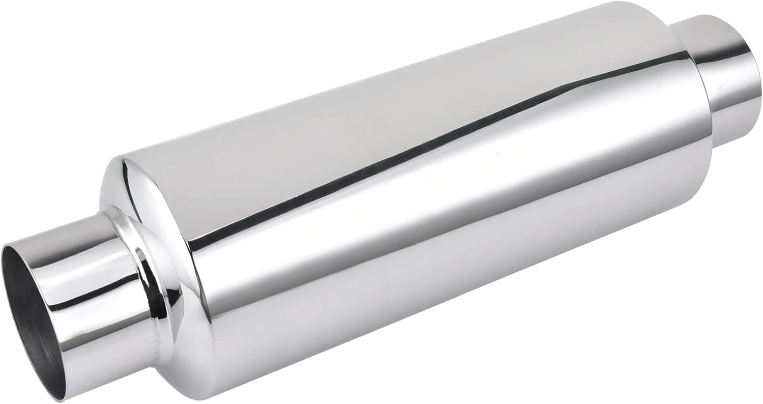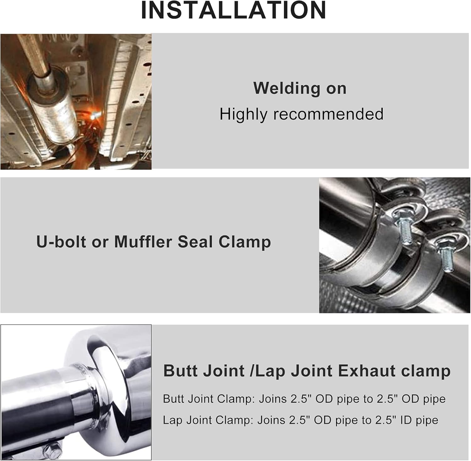 Bundle Included:1pc 2.5 inch Inlet 2.5 inch Outlet Exhaust Muffler Center and 2pcs 2 Holes Universal Exhaust Hanger