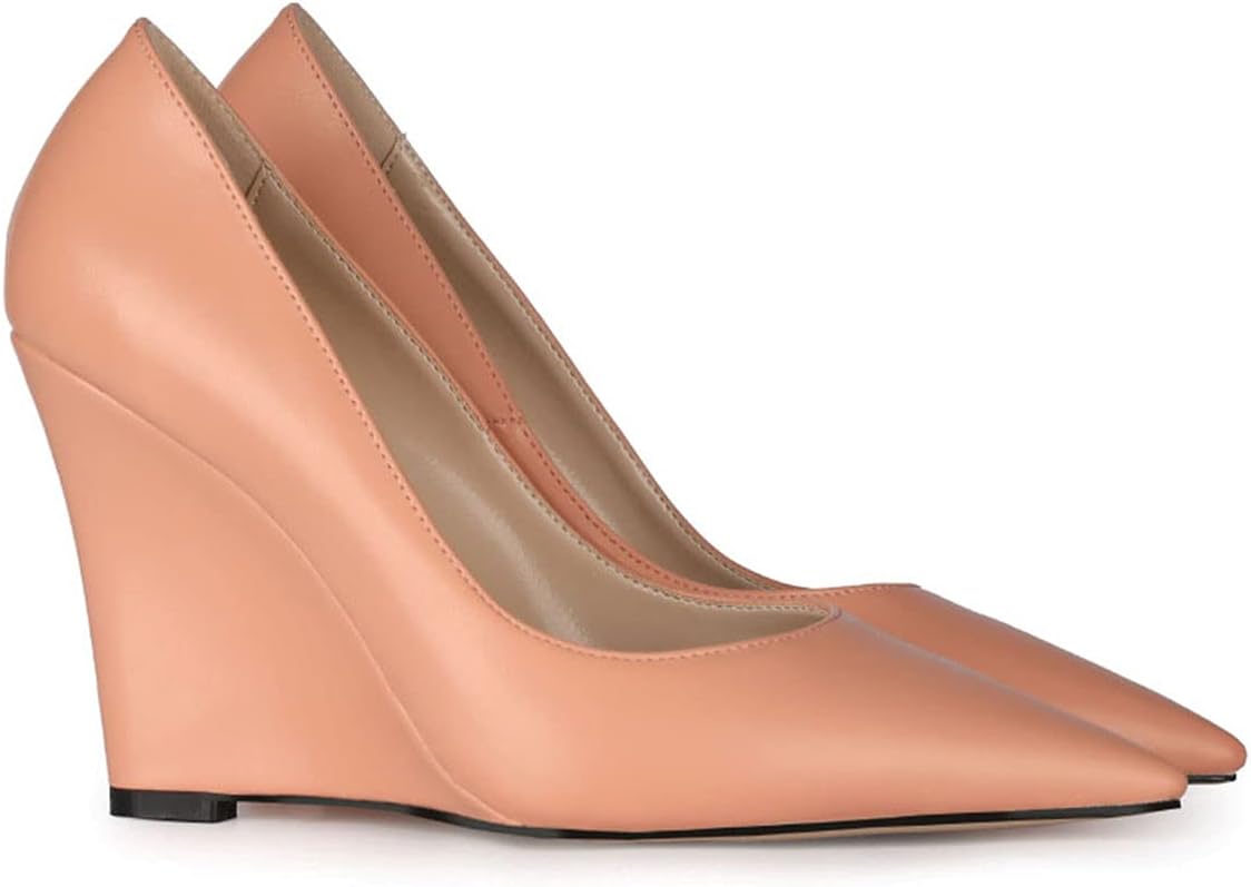 Welcome To Moommo Studio! 💕Shoes Features: 【Heel】Approx 4Inch; Approx 10cm. 【Material】Matte Leather/Patent Leather. 【Toe】Closed Pointy Toe Wedge Heels Dress Pumps for Women. 【Wear method】Slip On Pointed Toe Wedge Shoes Heels . 【Occasion】Fashion style for Casual ,Formal, Party, Wedding, Dating, Ball, Prom, Vacation. 【Size】True to size. Choose your usual size. 💕Moommo Advantages 【One】Every 1 pair of shoes is handmade. 【Ten】At least 10 test models for selecting the most comfortable type. 【Fifteen】The development of each shoe last are more than 15 days. 【Twenty】Over 20 years of shoe-making experience in our own factory. 【Three hundred and sixty-five】Our shoes will give you 365 days of peace of mind.