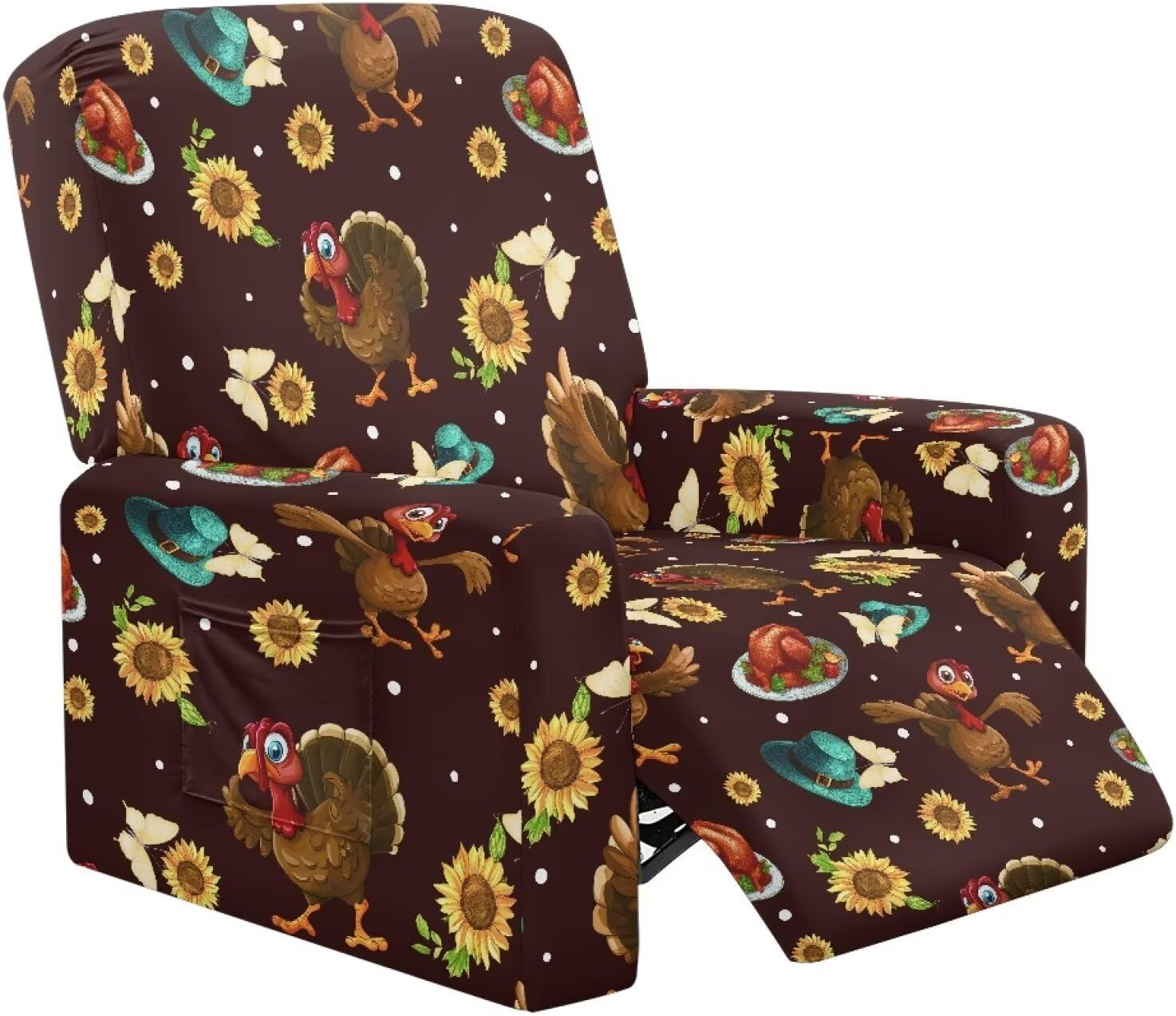 【Material Composition】Polyester+Spandex【Design Features】Full elastic edge with secure straps for non-slip fitIntegrated armrest covers with functional storage pocketsStretch fabric conforms to chair shape without wrinkling【Protection Performance】Resists spills, stains, and pet damageDurable construction prevents fading and wear【Size Specifications】Fits recliners 26in-35in Depth x 27in-37in Width x 30in-41in Height, Measure your recliner's depth, width, and height before ordering.【Usage Scenarios】Ideal for living rooms, apartments, and pet-friendly households. Perfect for refreshing old furniture or protecting new investments. Suitable for most recliner styles with arms.【Note】 Because of different measurement methods, pls allow 1in error.