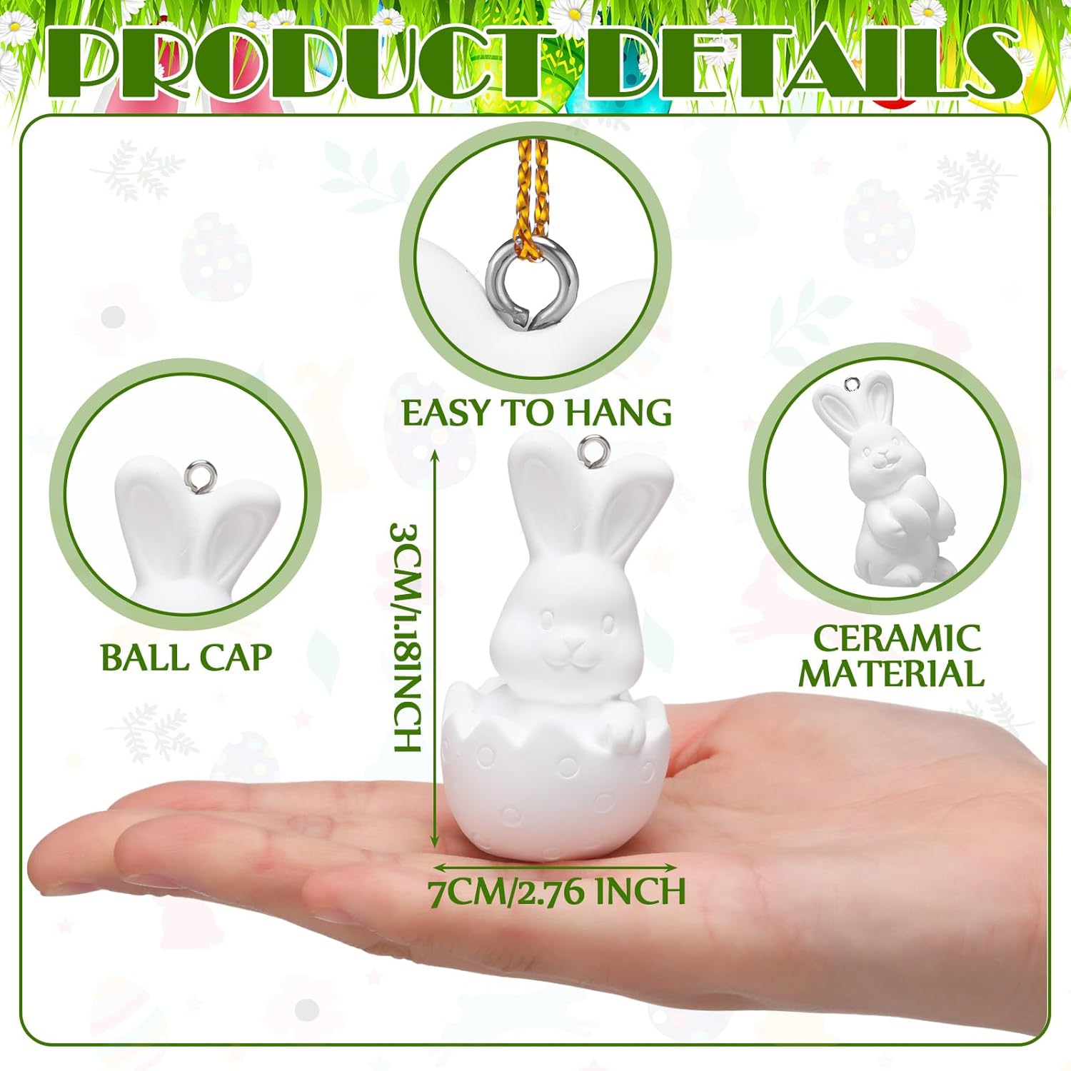 | Included Components | 24 x DIY ceramic Easter bunny ornaments, 4 x Brushes, 2 x Palette, 24 x Vibrant paint in 12 colors |