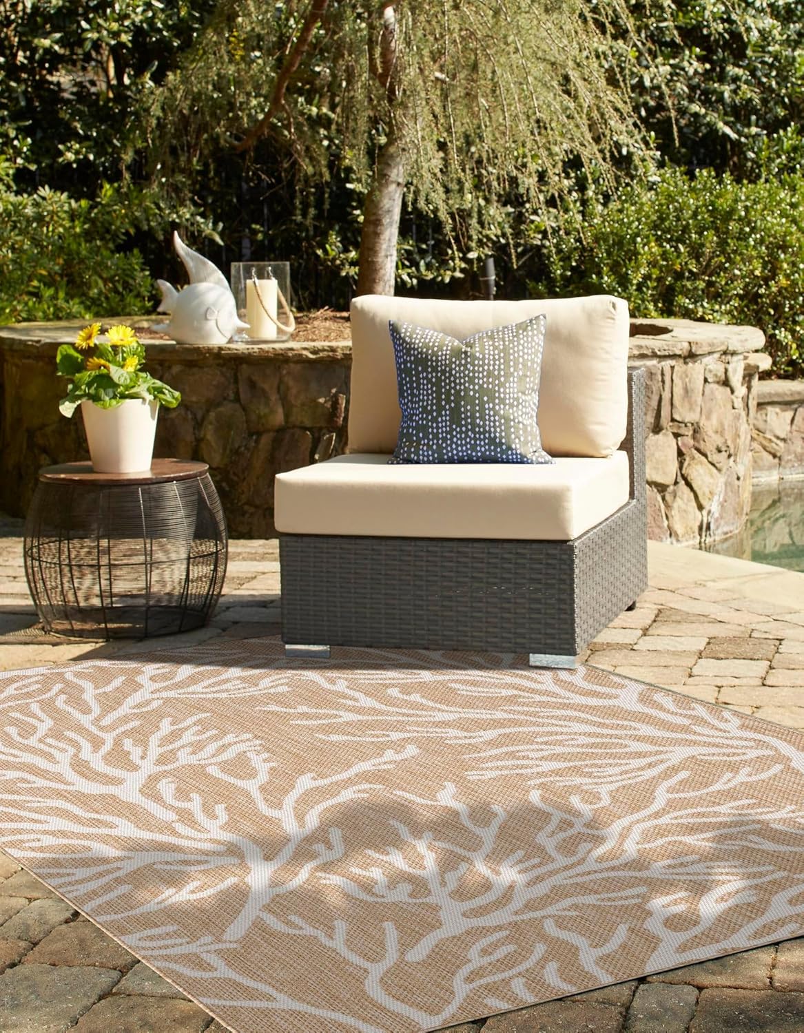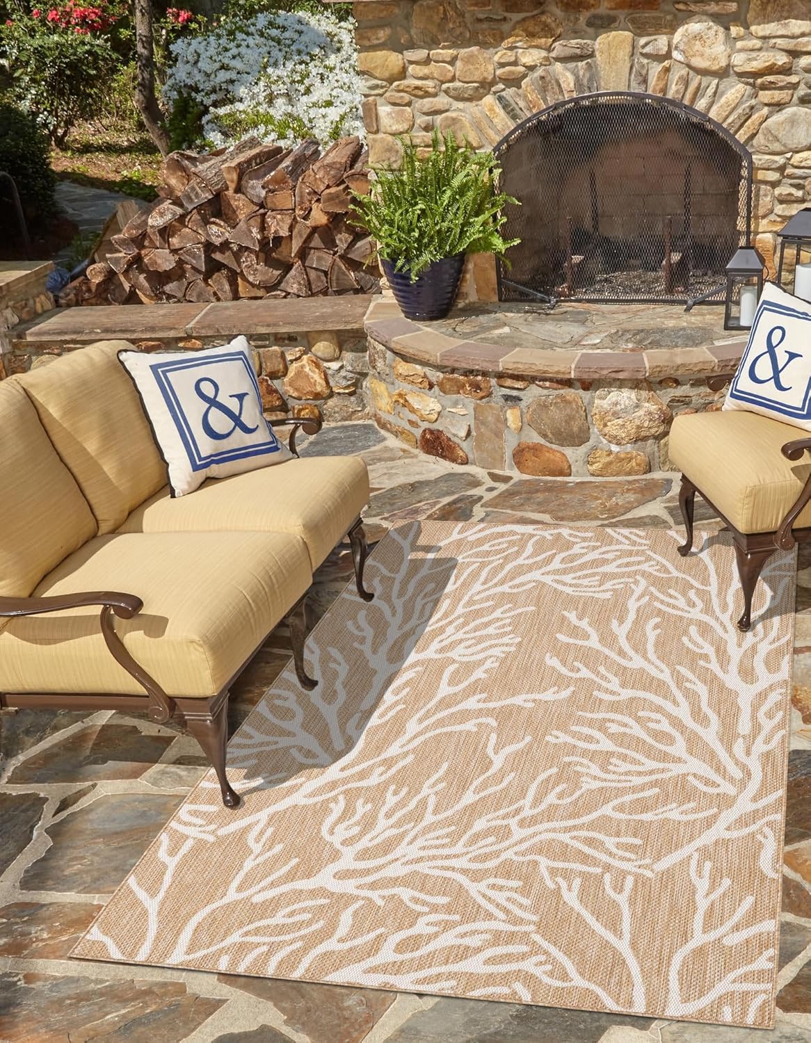 The Outdoor Coastal Collection can effortlessly complement a sunroom, anchor a casual living space, or complete the look of an outdoor patio area. Pair this rug with natural textures like wicker or teak, and accent it with pops of color through cushions or decor to create a cohesive, serene environment that echoes the tranquility of the seaside. This rug is stain-resistant, making it ideal for high-traffic areas or dining spaces where spills may occur. Additionally, its pet-friendly nature and shed-free properties ensure easy maintenance for homes with animals. The color palette and maritime theme make this rug well-suited for spaces with coastal, nautical, or beach-house decor.