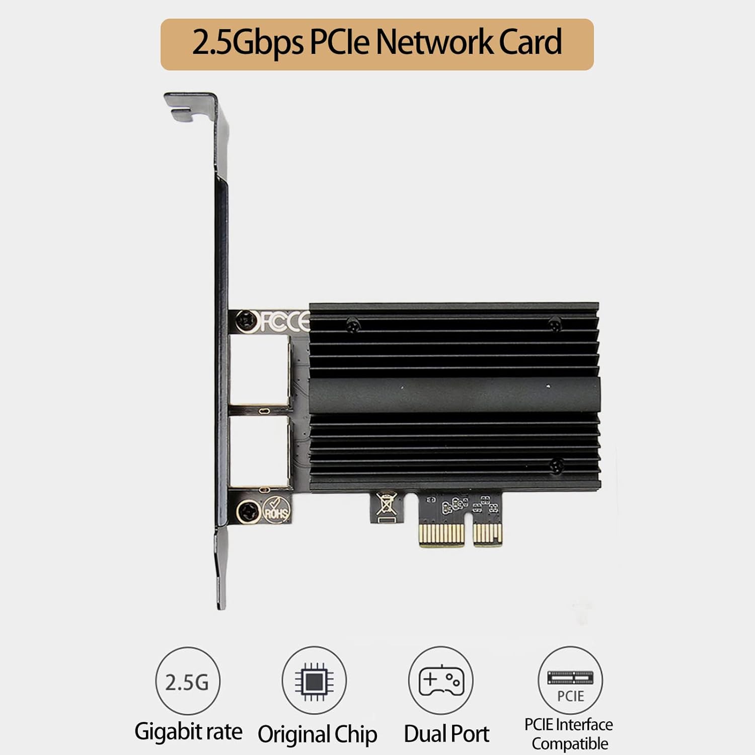 Spec:Item Type: PCIe Network CardMaterial: Aluminium AlloyColor: BlackChip: I226 VPorts: 10/100/1000/2500Mbps Rj45 Network Ports, Supporting Network Self AdaptationNetwork Standards: IEEE802.3, IEEE802.3u, IEEE802.3ab, IEEE802.3az, IEEE802.3bzCompatible Slot: PCIE 16X/8X/4X/1XNetwork Environment: 10/100/1G/2.5GCompatible System: Suitable for 7/8/10/11 and for OS X Laptop. OS SystemsApplication Scope: DesktopPackage List:1 xPCIe Network Card1 x Low Bracket1 x Screwdriver1 x Screw1 x Drivers CDNote:Please turn off computer before