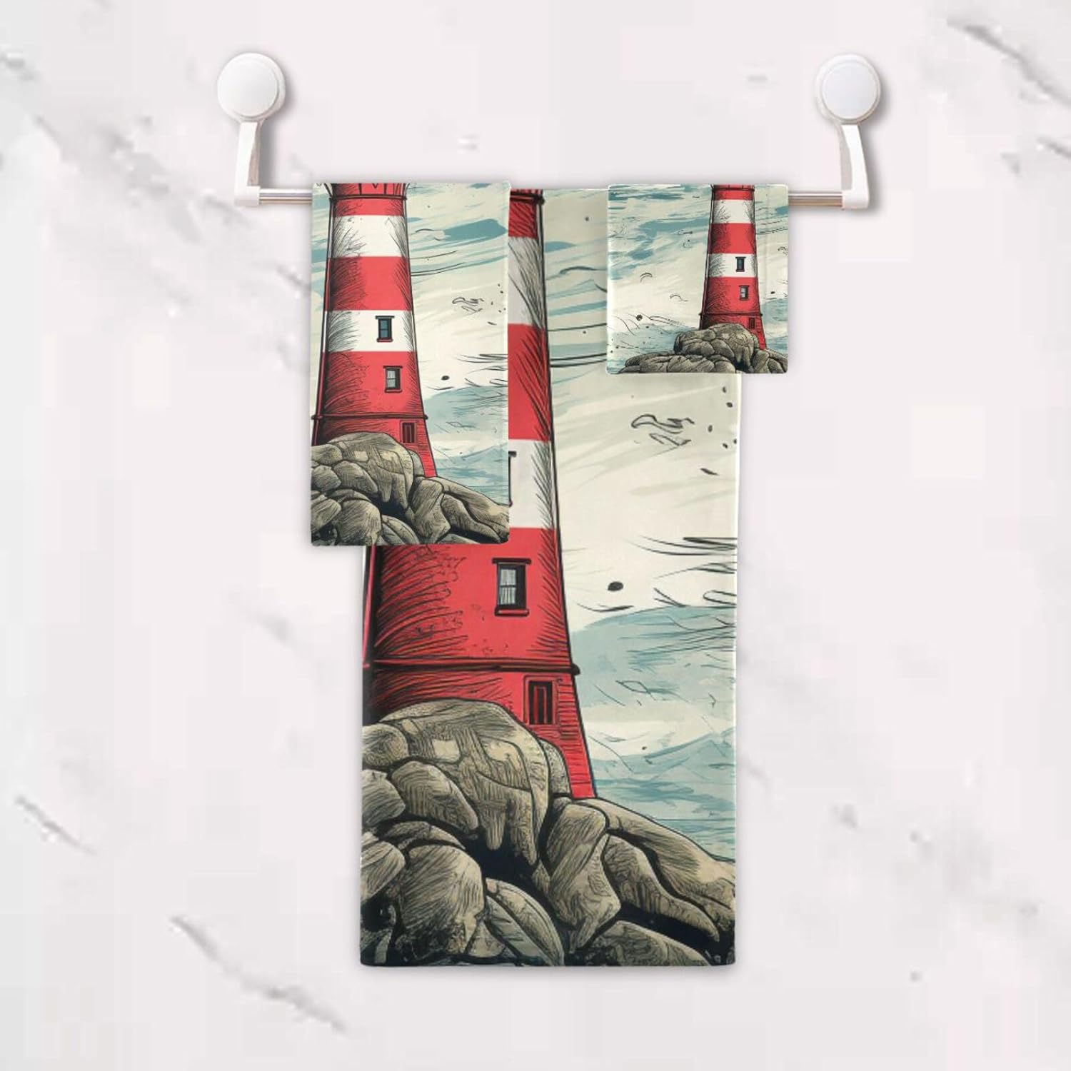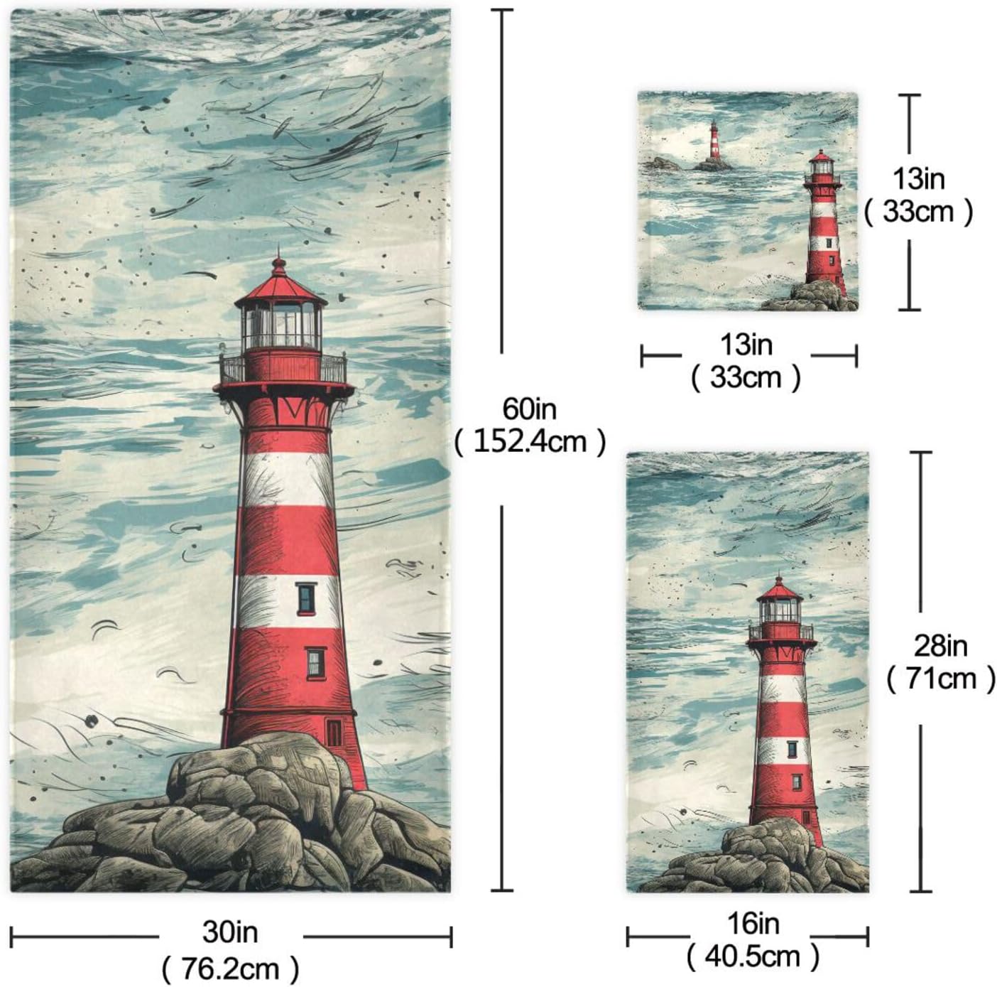 Size Towel Set Includes: 3-Piece towel set includes 1 bath towel,1 hand towel and 1 washcloth. Dimension: Bath Towel Size: 60 x 30 inch Hand Towel Size: 28x16 inch Washcloth Size: 13x13 inch Towel Material Printed surface is made of polyester and the back is made of cotton. Features Absorbent Lightweight Soft and Comfortable Single-Side Print Design Stylish and Delicate Pattern Multiuse Suitable for home,bathroom,gym,swimming pool, beach,etc. It's also could be a present for your friends or family. Care Instructions No bleaching Not suitable for washing in hot water above 40℃