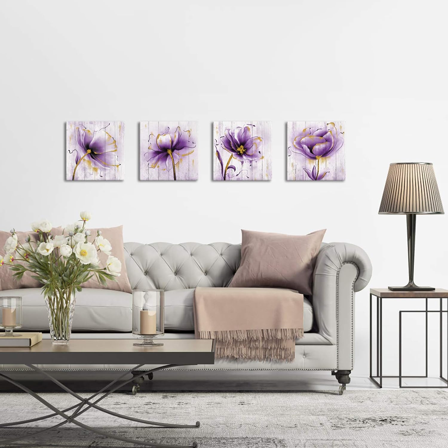 Artsbay Purple Wall Decor Purple and Gold Wall Art Narcissus Flowers Picture Lavender and Gold Bedroom Decor for Living Room Bathroom Office 12x12 Inches