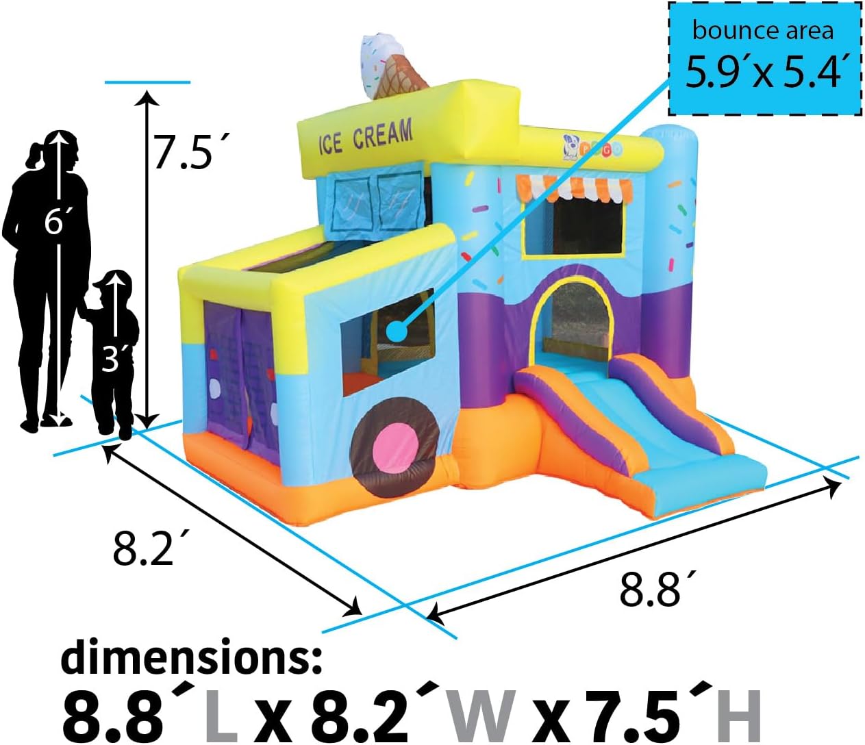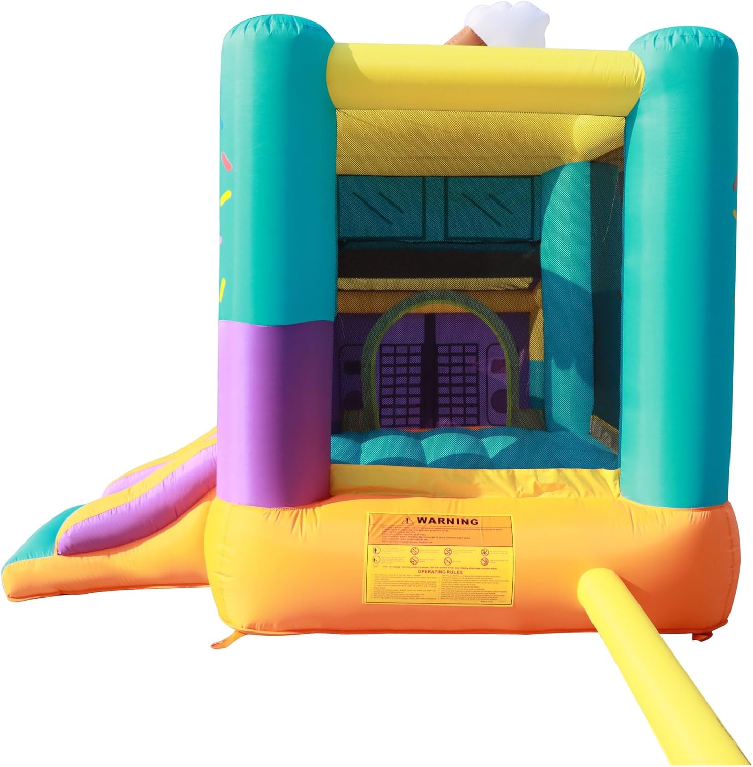 The Backyard Kids Inflatable Bounce House with Slide delivers magical outdoor entertainment with its multi-activity design. Children can enjoy bouncing on the large jumping surface, use the small slide to enter and exit, and an additional mini doorway to an extra area for hanging out adds more fun and excitement. Constructed with premium 840D oxford nylon in high-impact zones, this bouncy castle jump house with slide withstands active play. The 420D nylon sidewalls provide structural support without adding unnecessary weight. Features include full-coverage mesh netting with a breathable design that allows supervision. Setup is simple with the included blower that inflates this indoor and outdoor bounce house quickly. Ground stakes keep the bounce house anchored during use. When playtime ends, the quick-deflation valve and oversized storage bag make packing up effortless. Perfect as birthday inflatables, playdates, or everyday fun, this inflatable jumping house for kids outdoor provides hours of active, screen-free entertainment.