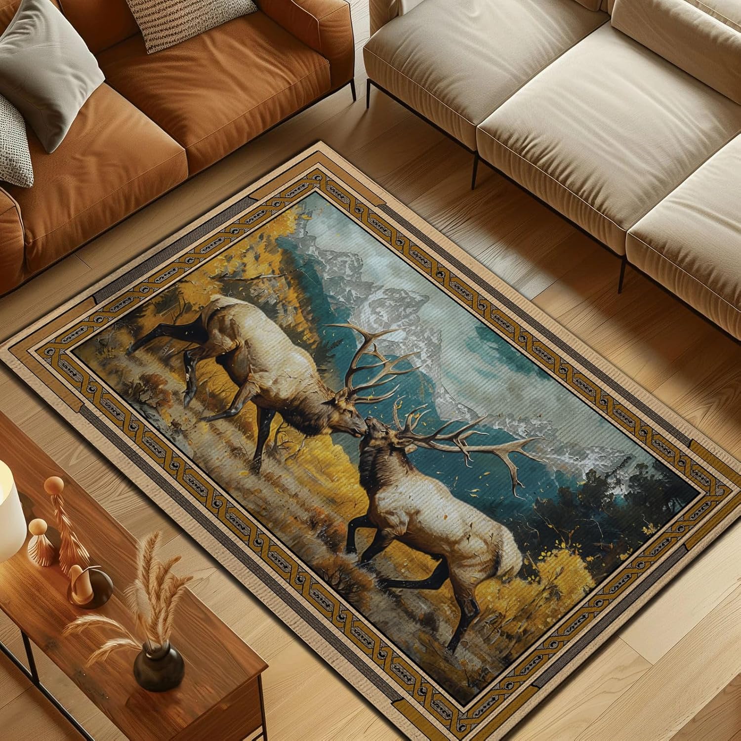 Transform your space into a rustic sanctuary with this Deer Hunting-inspired rug. Blending outdoor adventure with rugged elegance, this rug is perfect for creating a warm, inviting atmosphere in your home, whether for relaxation, reading, or storytelling by the fireplace.Premium Quality & ComfortSurface Material: Crafted from high-quality polyester fabric, this rug features intricate deer hunting symbols and wilderness-inspired designs, beautifully woven to provide a soft, luxurious texture. Its rich colors and detailed patterns enhance both the rugged and aesthetic appeal of any room.Non-Slip Backing: The durable rubber anti-slip backing ensures the rug stays securely in place, offering stability and safety on hardwood, tile, or carpeted floors.Optimal Thickness & Durability: Designed with a moderate thickness, this rug provides just the right amount of cushioning underfoot while remaining lightweight for easy repositioning. Reinforced stitched edges ensure durability, preventing fraying and maintaining its rustic charm over time.Easy Care & MaintenanceMachine Washable: Simply wash on a gentle cycle or hand wash as needed.Quick Drying: Air dry in a shaded area or tumble dry on low.Fade & Stain Resistant: Made with high-quality dyes, this rug retains its color and intricate details even after multiple washes.Order now, and we will process your order promptly. Thank you for visiting us!#DeerHuntingRug, Outdoor Rug, Hunting Lodge Decor, Rustic Carpet, Hunting Theme Rug, Cabin Room Rug, Woodland Decor, Hunting Lodge Mat, Wilderness Rug, Outdoor Adventure Decor, Non-Slip Hunting Rug, Rustic Lodge Rug, Deer Hunting Theme Rug