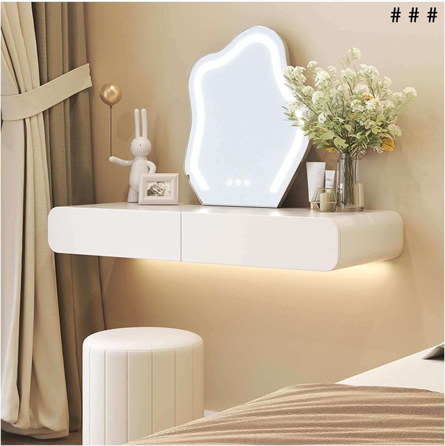 Elevate your space with our elegantly designed floating vanity, the perfect blend of style and functionality. This vanity offers a versatile, multi-functional design that seamlessly fits into various home aesthetics, making it ideal for bathrooms, bedrooms, or dressing areas. Experience smart storage solutions with smooth-gliding drawers that provide easy access to your essentials. Keep your space organized and clutter-free, allowing you to focus on what matters most—enjoying your daily routine. The sturdy construction ensures reliable stability, giving you peace of mind as you use it every day. Assembly is a breeze, so you can set up your new vanity quickly and effortlessly. This floating vanity is particularly suited for compact living spaces, maximizing floor area while providing ample storage. Package includes: 1 x Floating Dressing Table Please note: Only the table is included in the sale. There may be a size variation of 0.4 to 1.2 inches; kindly refer to the actual product for specific dimensions. Due to different lighting and screen settings, the color of the product may vary slightly from the images. Thank you for your understanding.