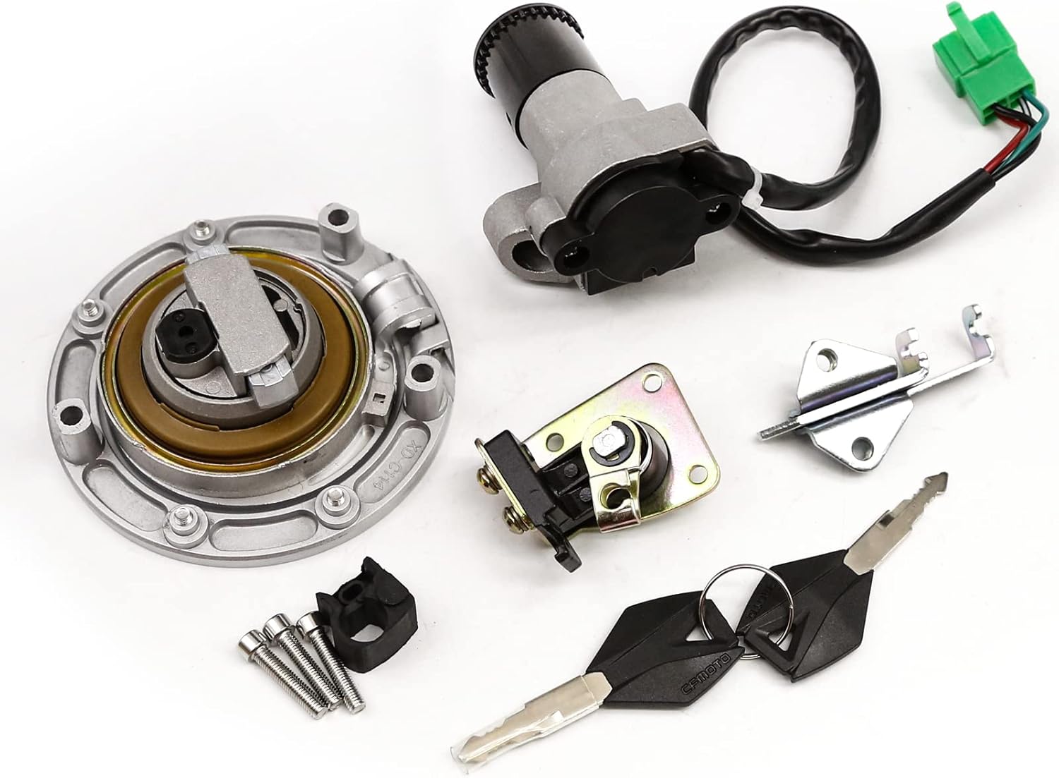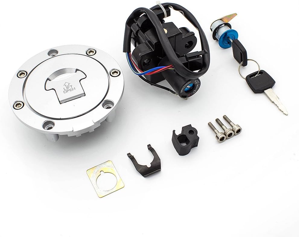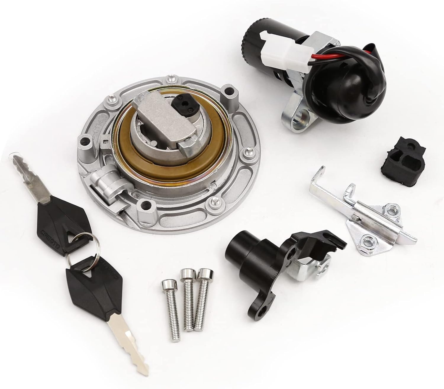 Fitment: ZX7R ZX9R ZXR400 ZX900 Feature: Material: Aluminum ,T6061&plastic 100% New,high quality and very durable Weight: 1.07KG Length:as the picture showed Color:as the picture showed Package include: 1 X Ignition Switch 1x fuel gas tank cap cover 2x blank keys About after-sales service: 1.Provide three months free warranty 2.We provide high quality products and best service to each customer 3.Everyone, If you have any questions, please do feel free to connect with us
