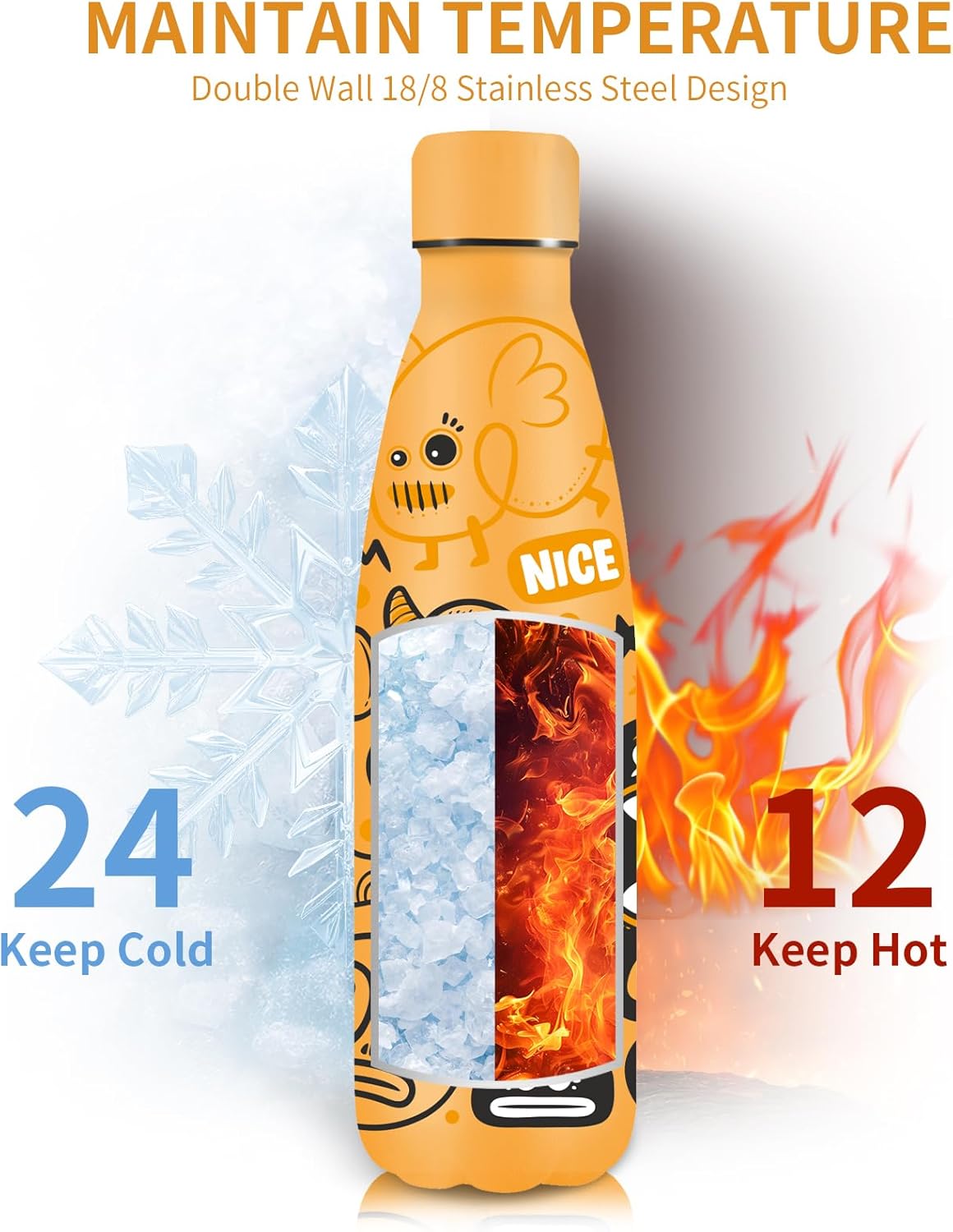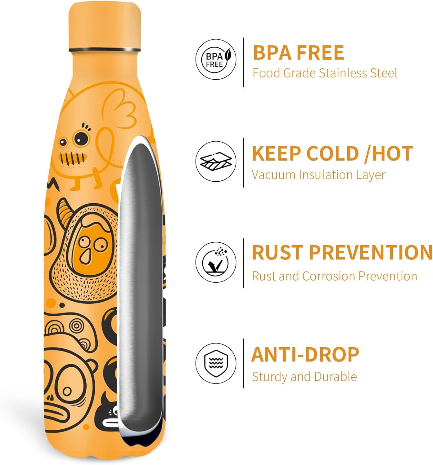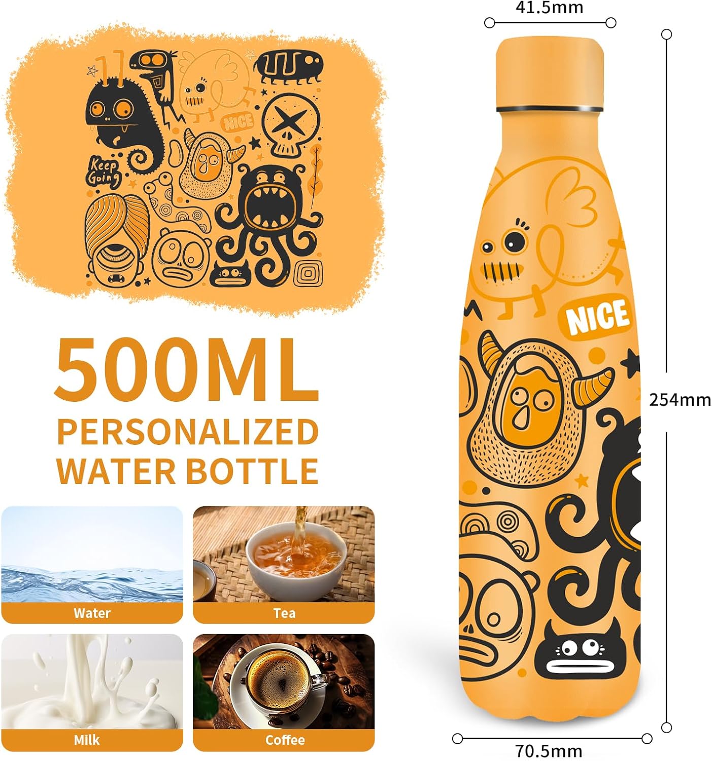 This children's drinking bottle is available in different colours and patterns and can meet children's daily water needs. The 500 ml stainless steel drinking bottle is made of 18/8 stainless steel, is 100% leak-proof, easy to clean, lightweight and exquisite, so you can easily take it with you. The Grsta drinking bottle also has a unique painted design, the pattern is clear and does not fade so quickly. It will become a daily companion for you and your children