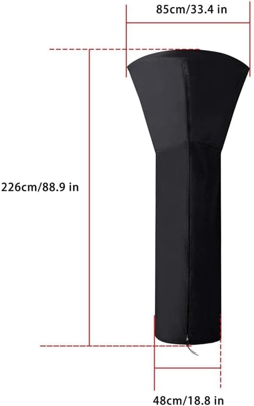 [Premium Outdoor Heater Cover] The Patio Heater Cover Is Made Of 210d Oxford Cloth With Waterproof Coating Inside, Tear Resistance And Weather Resistance. The Outdoor Heater Cover Can Protect The Patio Heater From Wind, Frost, Rain, Snow, Dust And Bird Droppings.[Easy To Clean And Store] This Waterproof Patio Heater Cover Comes To You,Being Stored In A Bag,Easy To Store. The Patio Heater Cover Is Also Easy To Clean. You Can Wash It With Water And Dry In The Sun Or Wipe The Dust And Stains On The Outdoor Heater Cover With A Damp Cloth.[Universal Size]Outdoor Patio Heater Cover Fits Most Round Stand-Up Patio Heaters. Warmly Notice Before Purchase: It Is Recommended That The Size Of Your Patio Heater Should Be 1-2 Inch Smaller Than The Cover. Please Measure Your Heater'S Size Carefully Before Purchase.[Easy To Install And Remove] The Patio Heater Cover Is Equipped With A Large Opening Design And A Sturdy Full-Length Zipper. It Is Easy To Put On And Take Off And It Can Be Easily Done By One Person. There Is An Adjustable Drawstring At The Bottom Of The Patio Heater Cover, Which Can Better Wrap The Outdoor Heater Without Worrying About Strong Wind.[Applicable Ocassion] This Patio Heater Cover Can Match Your Patio Heater In Any Occassion Like Garden Barbecue,Wedding,All Types Of Parties,Especially On The Cold Day.Colour: blackMaterial: Oxford clothSize: 226 x 85cmPackage includes:1 x Heater CoverOnly the above package content, other products are not included.Note: Light shooting and different displays may cause the color of the item in the picture a little different from the real thing. The measurement allowed error is +/- 1-3cm.Patio Heater Cover Standup Outdoor Heater Covers,210D Oxford Fabric Waterproof Heater Cover For Outdoor Heater,Dustproof [Premium Outdoor Heater Cover] The Patio Heater Cover Is Made Of 210d Oxford Cloth With Waterproof Coating Inside, Tear Resistance And Weather R