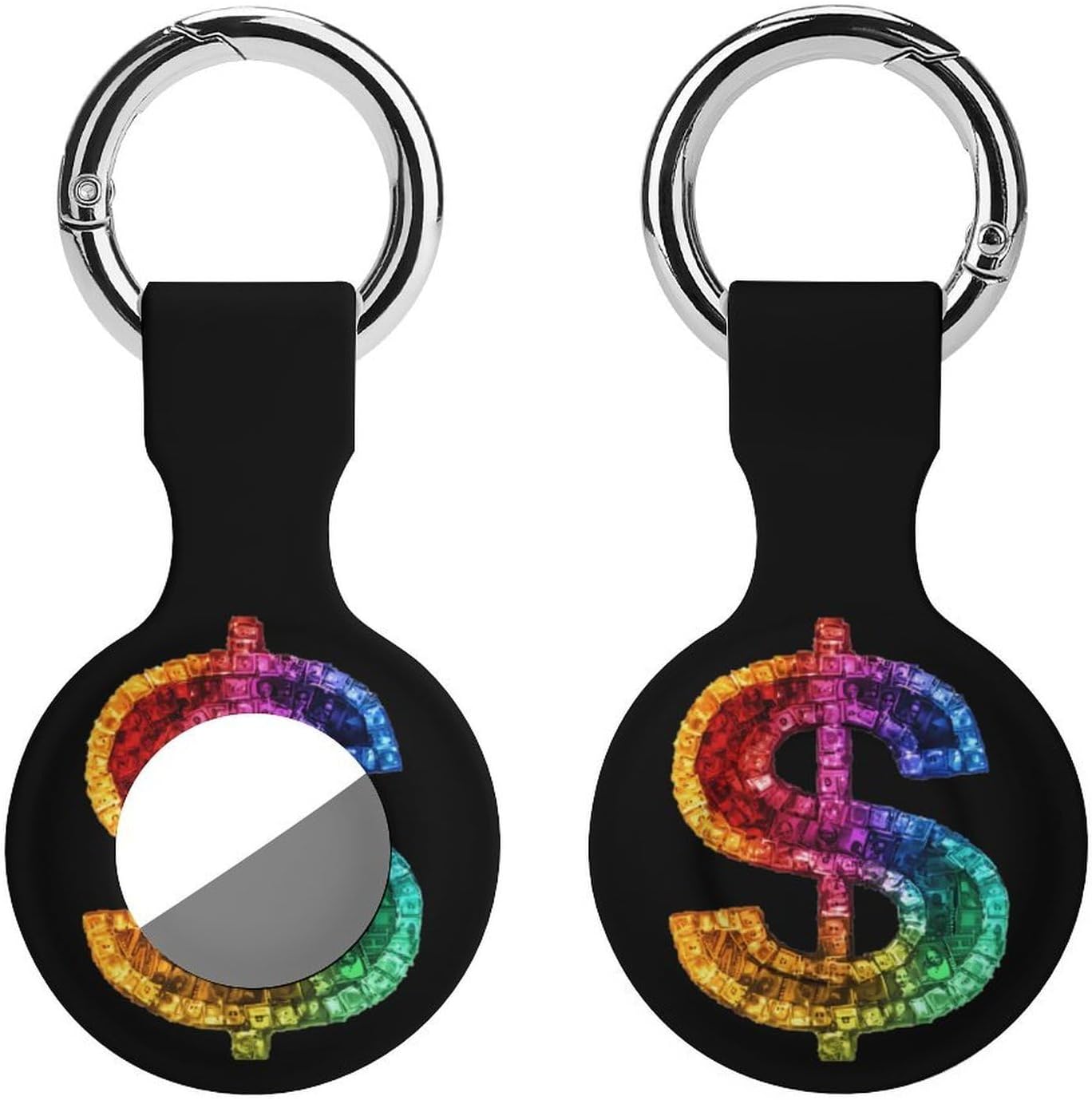Rainbow Dollar Sign Funny Cover Compatible with AirTag Case Protector GPS Tracker Holder with Keychain