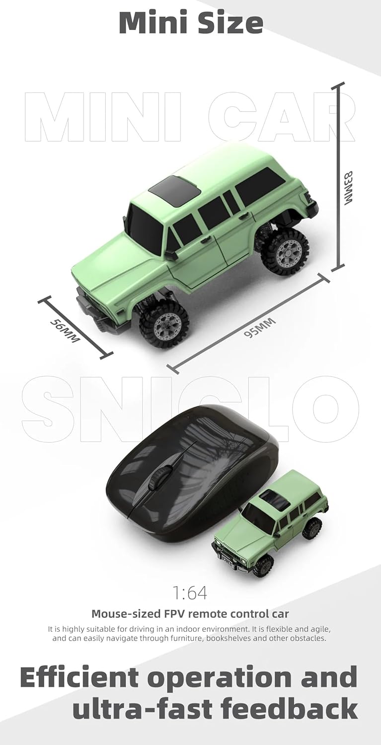 Specifications:.Material: ABS + Metal + Electronic Components.Name: 1:64 Scale RC Mini Climbing Car.Scale: 1:64.Wheelbase: 5.6 cm.Wheel Track: 3.3 cm.Drive System: 4WD (Four-Wheel Drive).Speed: 2.5 KM/H.Channels: 8CH.Frequency: 2.4GHz.RC Distance: ge;20m.RC Type: Full Proportional Synchronized Control.RC Time: 60mins (Normal Mode at Full Speed) / 30mins (CAM Mode).Charging Time: Approximately 1.5 hours.Remote Controller Battery: AAA Battery (Not Included).Car Battery: 3.7V Li-po Battery (Included).Charging: Type-C Charging.Product Dimensions: 9.5 x 8.3 x 5.6 cm.Package Dimensions: 19.3 x 16.2 x 22.6cm.Package Weight: 1350g.Packing: Graphic Carton.Ages: 16+