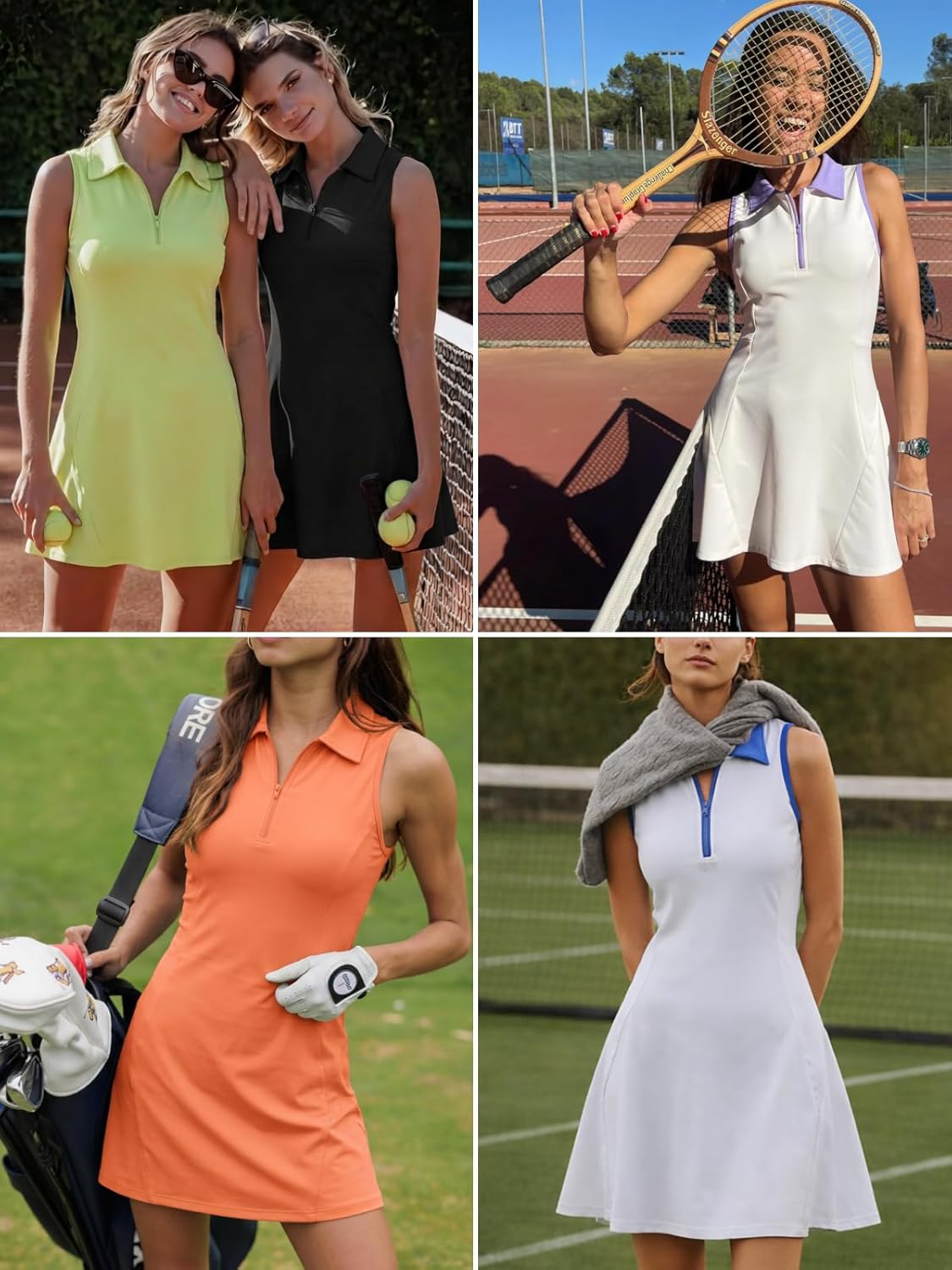 GroYolan Womens Tennis Dress Shopping Tips: Color: Black, dark brown, white-blue, white-purple, apple green. Occasions: Tennis, golf, badminton, pickleball, sports events, casual outings, outdoor activities, and everyday wear. Size Options: - Size S fits 88.2-104.7 lbs (40-47.5 kg) - Size M fits 104.7-121.3 lbs (47.5-55 kg) - Size L fits 121.3-132.3 lbs (55-60 kg) - Size XL fits 132.3-143.3 lbs (60-65 kg) - Size XXL fits 143.3-154.3 lbs (65-70 kg) Please refer to the size chart before ordering. If you are between two sizes, we recommend choosing the larger size for a more comfortable fit. Care Instructions: Place the women's tennis dress in a laundry bag for machine wash or hand wash gently.