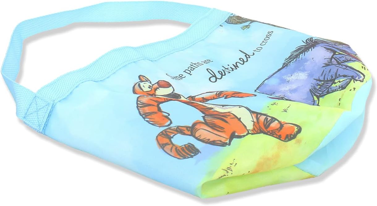 Pack everything kids need and escape to the Hundred Acre Wood with this easy-to-carry Exclusive Winnie the Pooh Bucket Bag! A durable nylon body and lining keeps this stylish and fun Winnie the Pooh tote bag protected from spillage and other messy mishaps. With a flexible 1 inch heavy weight polypropylene webbing handle, this water resistant bag withstands daily activities and beach trips! This Winnie the Pooh bag is lightweight, compact, fold-able, and reusable. It's the perfect bag for: summer beach days, the pool, picnics, an Easter Basket, a trick-or-treat Halloween bag, toy storage, camp, the park, a birthday gift bag, carrying toys, or carrying your little one's collectibles! This fun bag features classic Winnie the Pooh characters: Piglet, Tiger, Eeyore, and Winnie the Pooh! It's the perfect reusable kid's bag for any Winnie the Pooh fan!